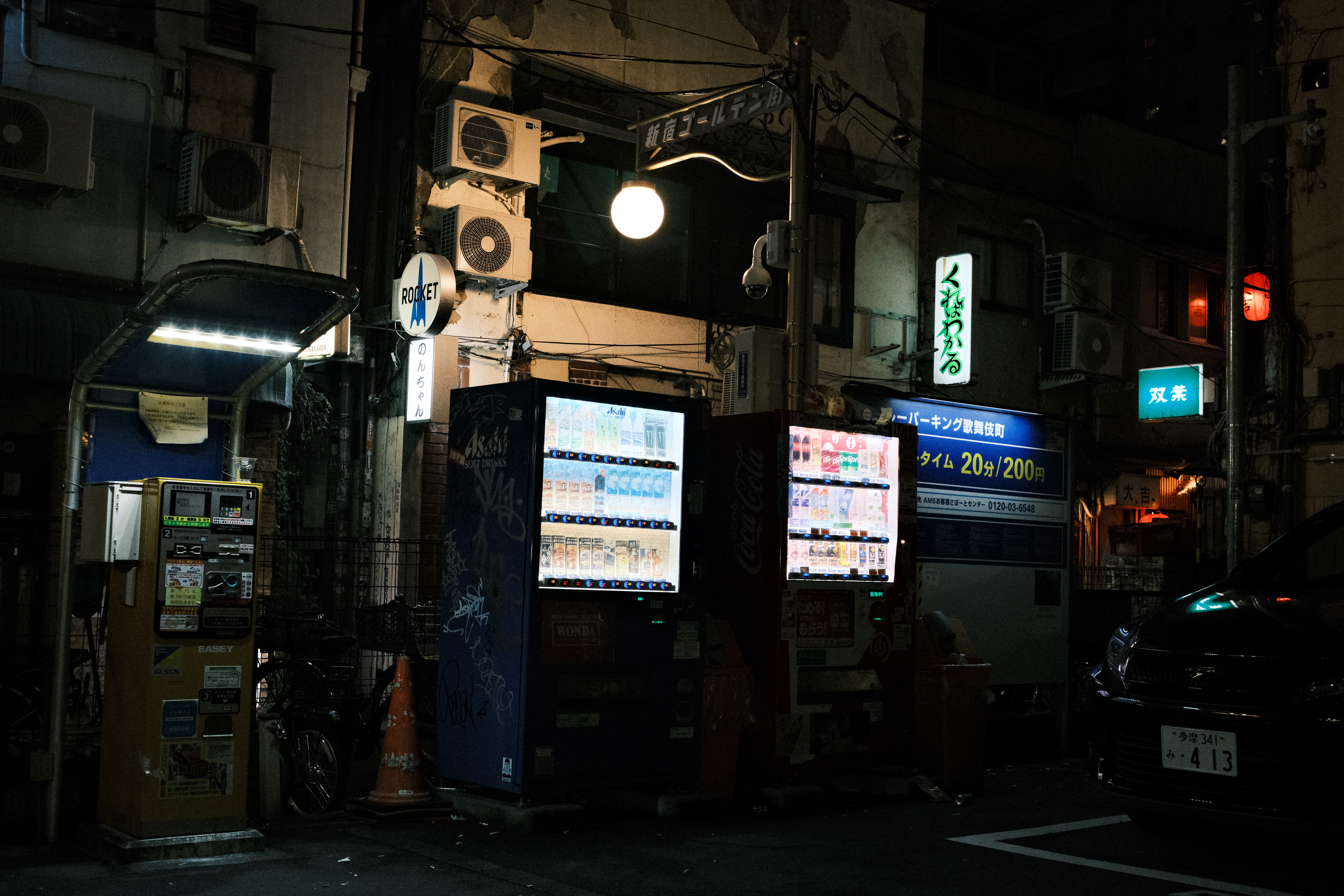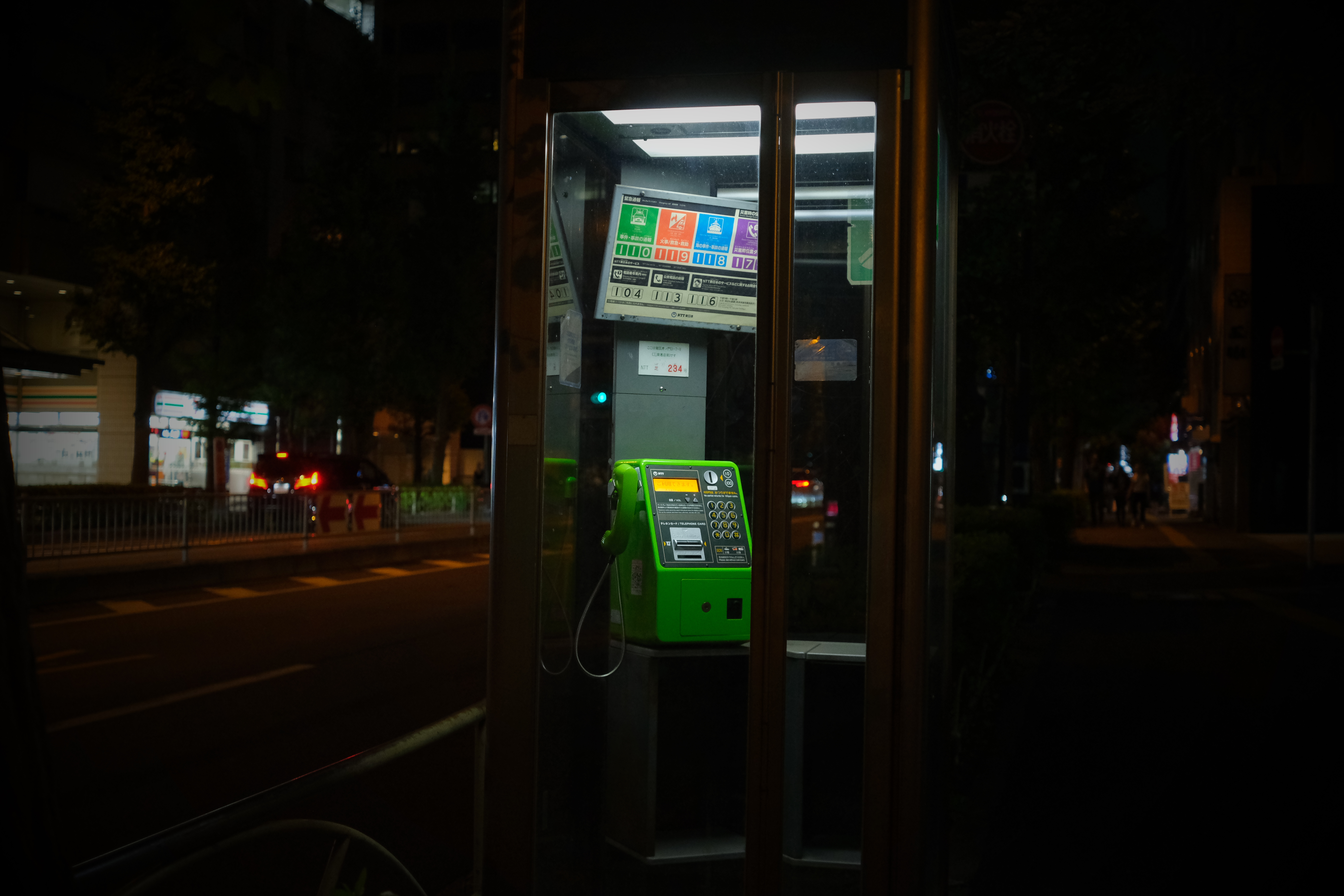 Japan is a country of thresholds. Subway stations at night. Lone green pay phones glowing under tungsten light. Shrine paths. Vending machines at dawn.