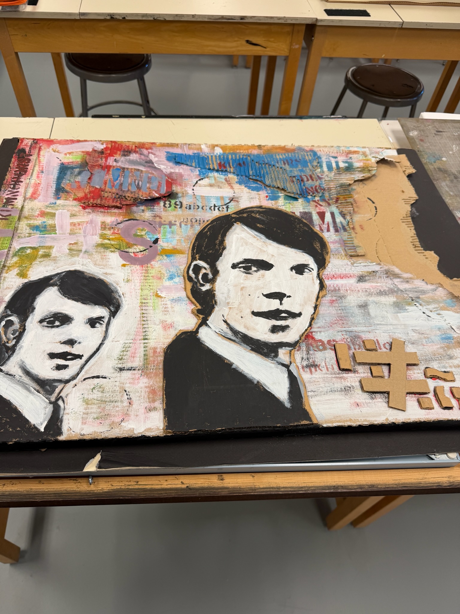 I remember seeing it on display a few years after graduating and wanting to disappear into the floor. Oh god, why would they put that up? I’d wanted to paint on cardboard, mixed media, the whole thing. The idea was clear in my head. In practice it didn’t really work. And there it was, on a wall, for other people to look at.
